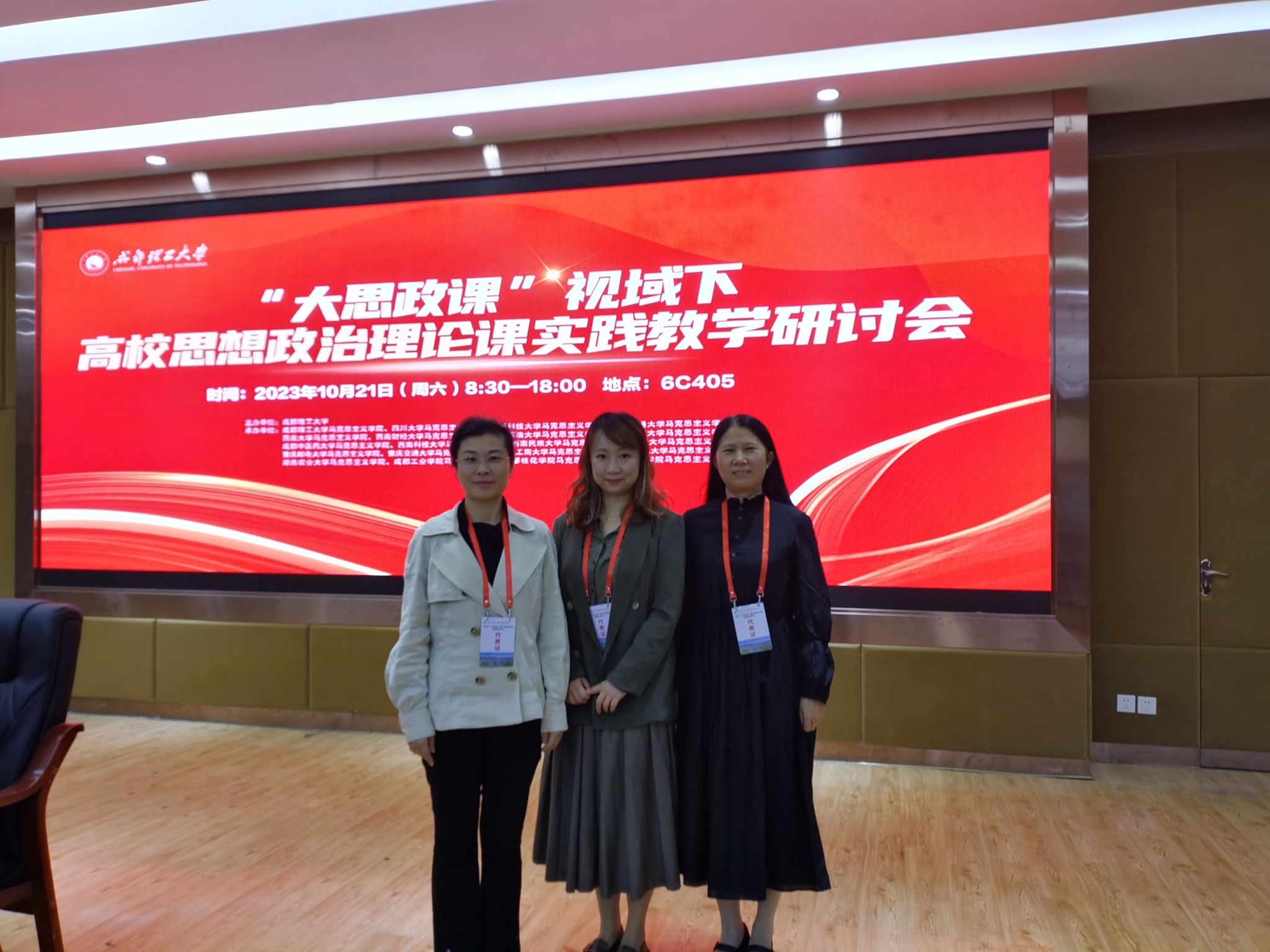 为深入学习贯彻党的二十大精神,贯彻落实习近平总书记关于“大思政课”的重要指示批示,落实《全面推进“大思政课”建设的工作方案》(教社科〔2022〕3 号),全面推进“大思政课”建设,推进高校思想政治理论课实践教学改革创新,探索新时代高校思想政治理论课实践教学新理念、新思路、新方法,促进高校思政课教师之间的学习交流,由成都理工大学主办,成都理工大学、四川大学、电子科技大学、西南交通大学、西南大学、西南财经大学等18所高校betway西汉姆联平台共同承办的“‘大思政课’视域下高校思想政治理论课实践教学研讨会”于2023 年 10 月 20 日至22 日在成都理工大学隆重举行,来自四川、重庆、河南、武汉、哈尔滨等地多所高校的百余位专家学者参加了会议,我院孙莎岚副院长和隋宁、侯莲梅两位老师参加了此次会议。