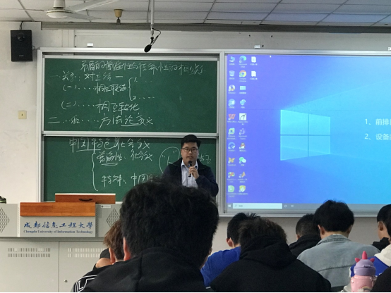 积极备战四川省2023年高校思想政治理论课“精彩一课”决赛的杨万兴老师为大家呈现了一堂精彩的马克思主义基本原理之“矛盾普遍性与特殊性”的教学观摩课,讲授但凭板书、不假课件,思路清晰、举例丰富。此外,我院同时成功入围“精彩一课”决赛的冯薇、李晓蓉两位老师也分别演练了“中国历史性变革的内涵”、“‘第二个结合’的三维向度”专题教学。