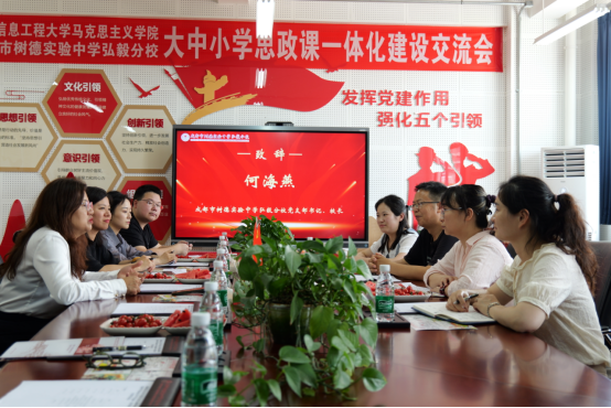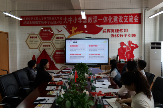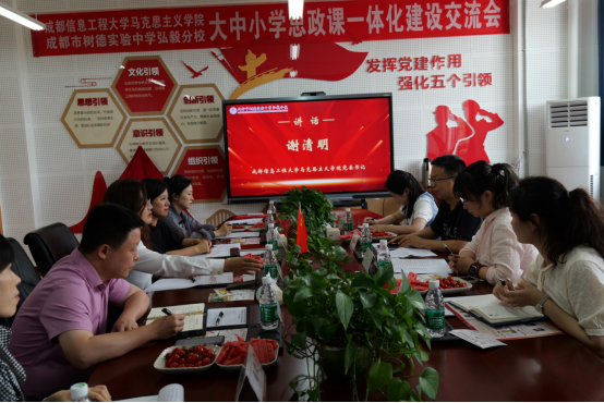 为深入贯彻落实习近平总书记关于“大思政课建设”的重要指示精神,推进新时代大中小学思政课一体化建设,构建纵向衔接、横向贯通的思政教育体系,5月15日下午,我院与成都市树德实验中学弘毅分校开展了大中小学思政课一体化建设合作共建交流活动,学院党委书记谢清明、副院长孙莎岚、毛中特教研室主任阳甜、形势与政策教研室主任肖艳赴树德实验中学弘毅分校参加活动,受到树德实验中学弘毅分校党支部书记、校长何海燕,副校长杨凤等领导热情接待流。