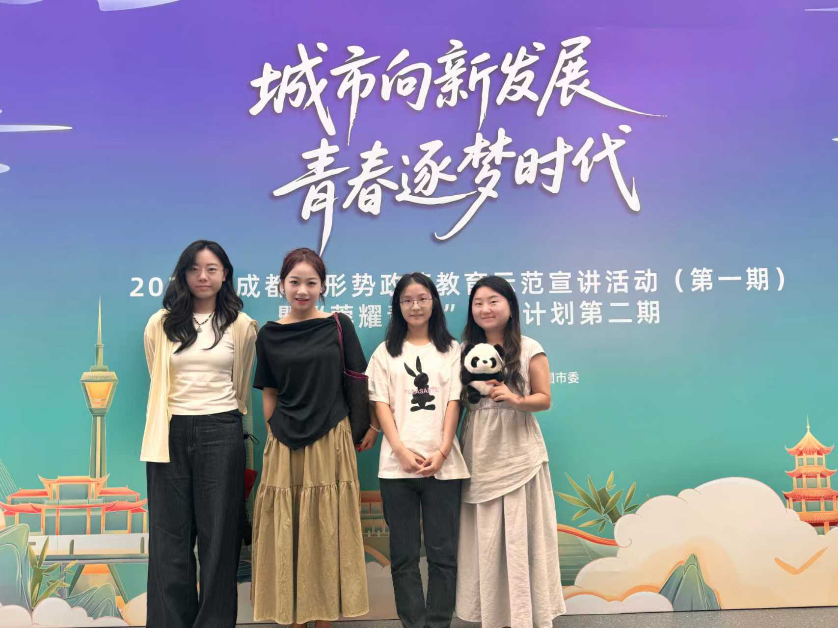 2025年9月20日,由成都市委宣传部、市教育局、团市委等单位联合主办的“城市向新发展 青春逐梦时代”2025年成都市形势政策教育示范宣讲活动(第一期)暨“蓉耀青年”成长计划第二期培训在成都大学成功举行,学院“信马铸魂”理论宣讲团4位成员全程参与学习。