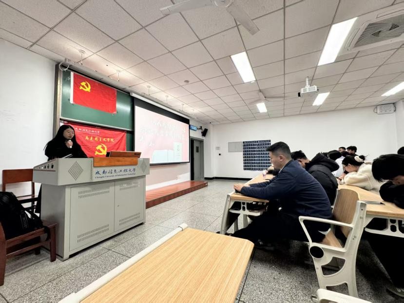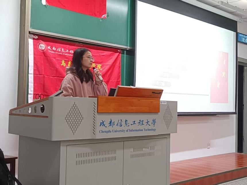 11月24日,“信马铸魂”理论宣讲团受邀为电子工程学院、资源环境学院发展对象开展集中宣讲培训,宣讲团成员唐梓晴、卿玉莹、朱良艳分别作主题宣讲。