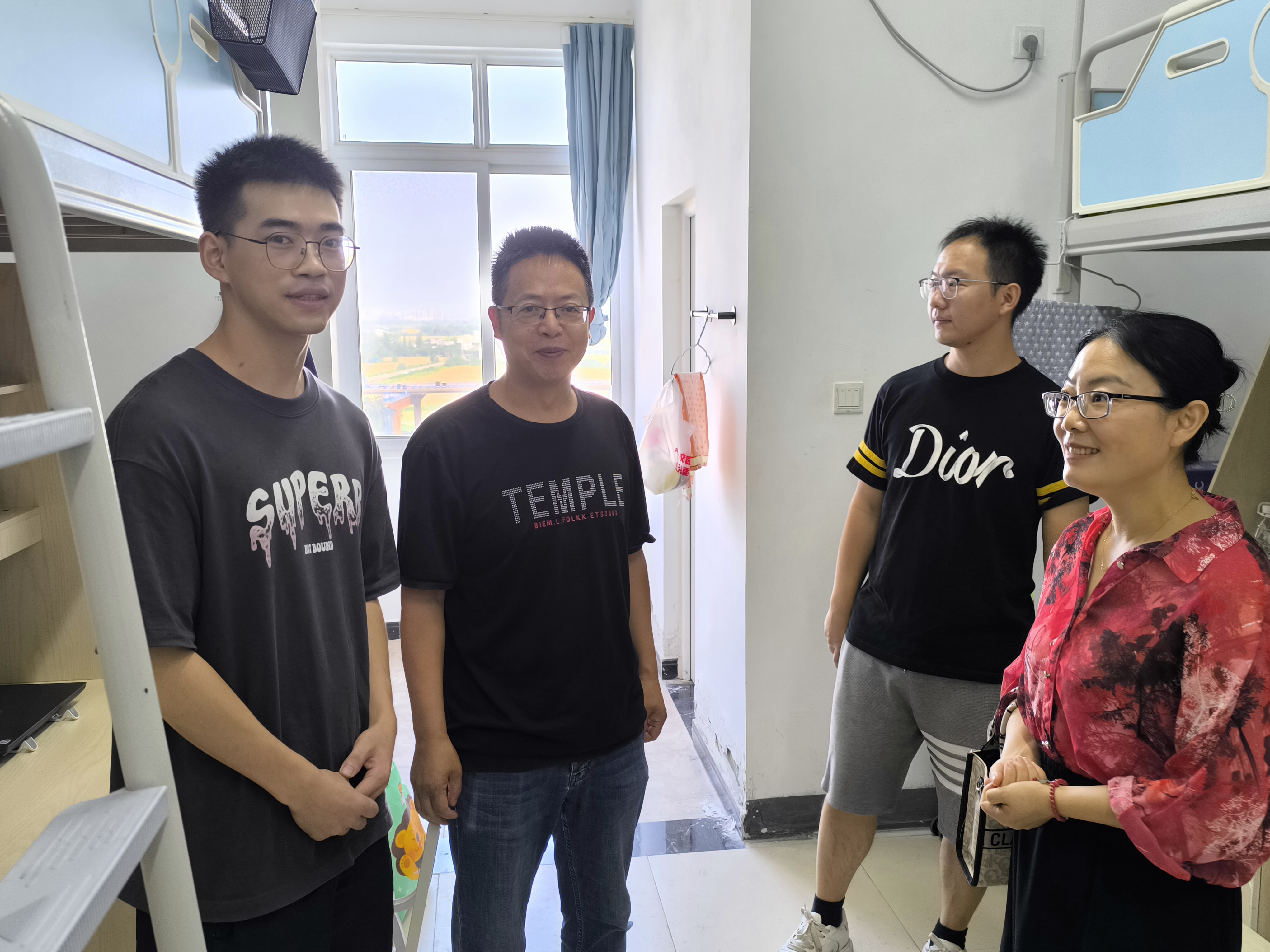 9月1日下午,betway西汉姆联平台党委书记谢清明带队走访新生寝室,研究生教研室主任王英,研究生辅导员郝亮陪同走访。