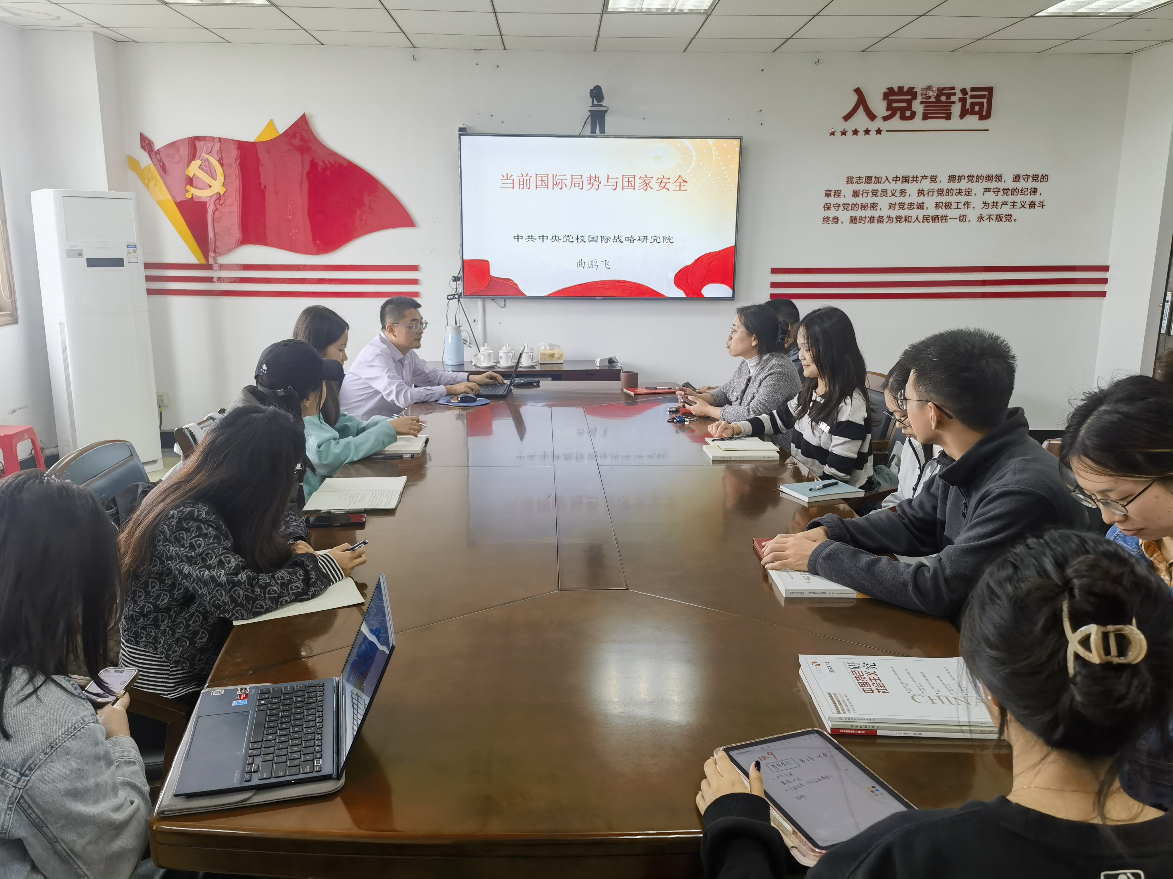10月9日,中共中央党校(国家行政学院)国际战略研究院副所长曲鹏飞教授应邀为我院师生作《当前国际局势与国家安全》专题讲座。讲座由院长丁小珊主持,学院教师与研究生同学们参加了讲座。