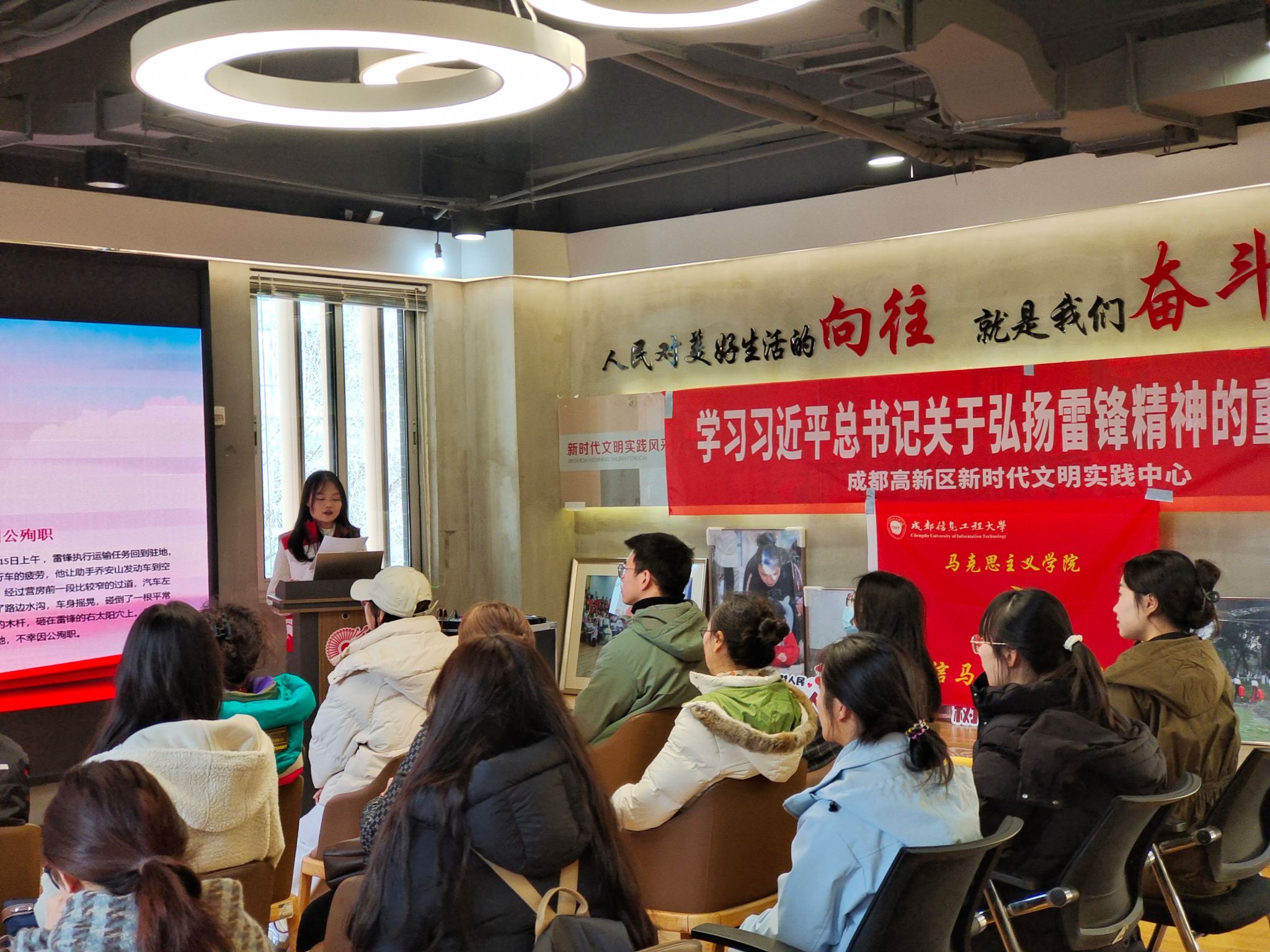 3月19日下午,“信马铸魂”理论宣讲团成员前往成都高新区新时代文明实践中心开展了一场学习习近平总书记关于弘扬雷锋精神重要论述的宣讲活动。此次宣讲由宣讲团成员吴媛媛主讲,其余成员积极参与其中,共同学习领会。