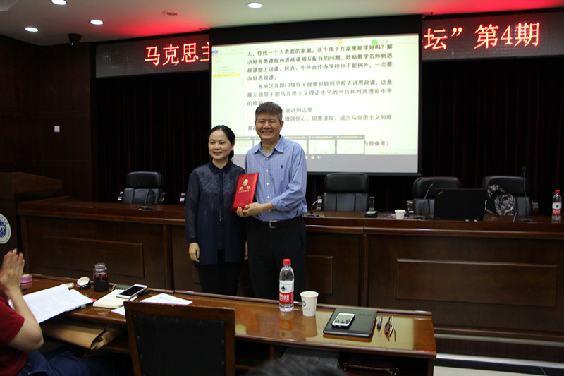 讲座中,戴钢书教授对习近平总书记重要讲话精神的核心要义进行了详细深刻的解读,介绍了从脑机制的角度研究思想政治教育难题的方法和研究成果。讲座结束后,戴丽红向戴钢书教授颁发了学校特聘教授证书。