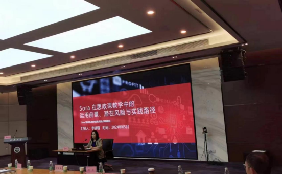 我院李晓蓉老师以“Sora在思政课教学中的运用前景、潜在风险与实践路径”为题进行了大会发言。她详细分析了sora在思想政治课中的具体应用,指出了其带来的机遇和挑战,并建议建立内容审核体系和资源库,优化反馈机制等,以更好地适应AI时代的教育需求。与会专家赞同李晓蓉老师的观点,并认为她对思想政治教育数字化工作做出了一些有益的具体尝试。