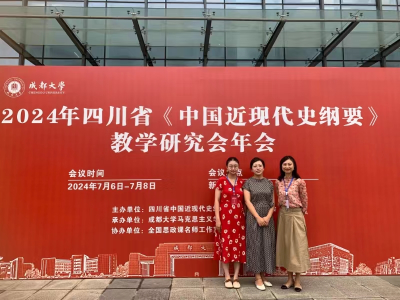 2024年7月7日,四川省高校“中国近现代史纲要”教学研究会在成都大学召开,来自省内高校的200多位教师齐聚一堂。我院丁小珊院长带队赴会交流,“纲要”教研室主任邹珍妮老师、冯薇老师一同参加了此次会议。