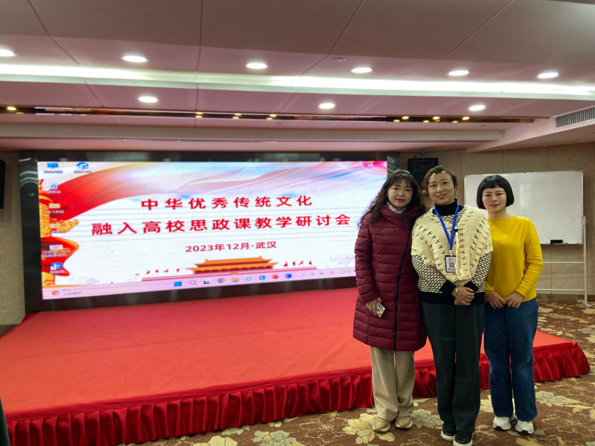 为深入学习领会习近平总书记关于弘扬中华优秀传统文化的系列重要讲话精神,特别是在文化传承发展座谈会上的重要讲话精神,帮助广大教师夯实中华优秀传统文化的功底,更好担负起新的文化使命,推动思政课守政创新,让高校思政课教学和中华优秀传统文化同频共振,充分发挥中华优秀传统文化在铸魂育人中的作用,2023年11月30日至12月3日,高等教育会议中心在武汉举办“中华优秀传统文化融入高校思政课教学研讨会”。会议以中华优秀传统文化与马克思主义中国化时代化;中国共产党与中华优秀传统文化;中华优秀传统文化和中国精神;中华优秀传统文化和中国式现代化;中华优秀传统文化融入高校思政课教学的路径方法;中华优秀传统文化融入高校思政课教学示范等方面为主题,参加会议的有来自全国各高等(高职)院校思政课的教师和领导,共约100余人。我院教师肖韵、张倩,鲜红参加了此次会议。