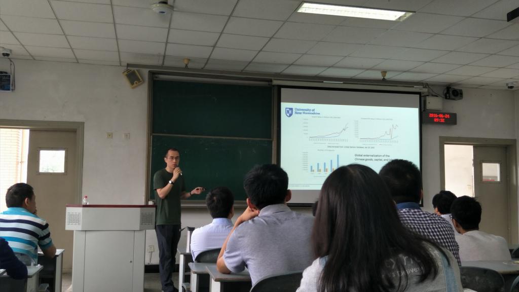 The lecture given by Professor Tu Lan from University of New Hampshire entitled Made in Italy by Chinese was held in classroom 1309 of Hang Konggang campus with attendance of teachers and students fromControl Engineering College.